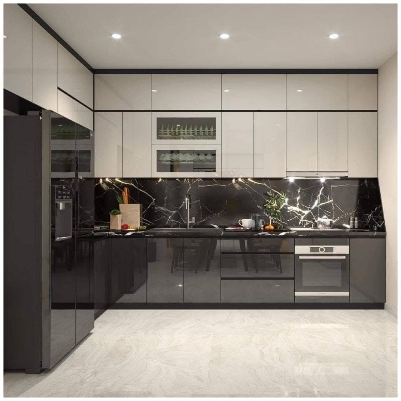 - Tủ bếp phủ acrylic: Tủ bếp phủ acrylic được làm từ chất liệu cao cấp, mang đến vẻ đẹp sang trọng cho căn bếp. Với độ bóng cao, tủ bếp phủ acrylic dễ dàng lau chùi, chống trầy xước, phai màu, giúp bảo vệ màu sắc và độ bền cho tủ bếp.